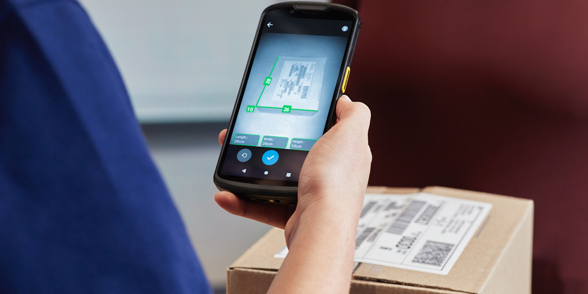Dank des integrierten TOF Tiefensensors ermitteln Sie nun in nahezu jeder Umgebungen und weniger als 5 Sekunden mobil die Seitenlängen von 10 bis 100 cm (3,9 bis 47,24 Zoll) von Paketen oder Kartons. Unabhängig davon, ob das Paket auf dem Boden oder dem Tresen steht und ob das Paket mit Paketband oder Etiketten beklebt ist. Ein zuverlässige Messung ist gewährleistet.